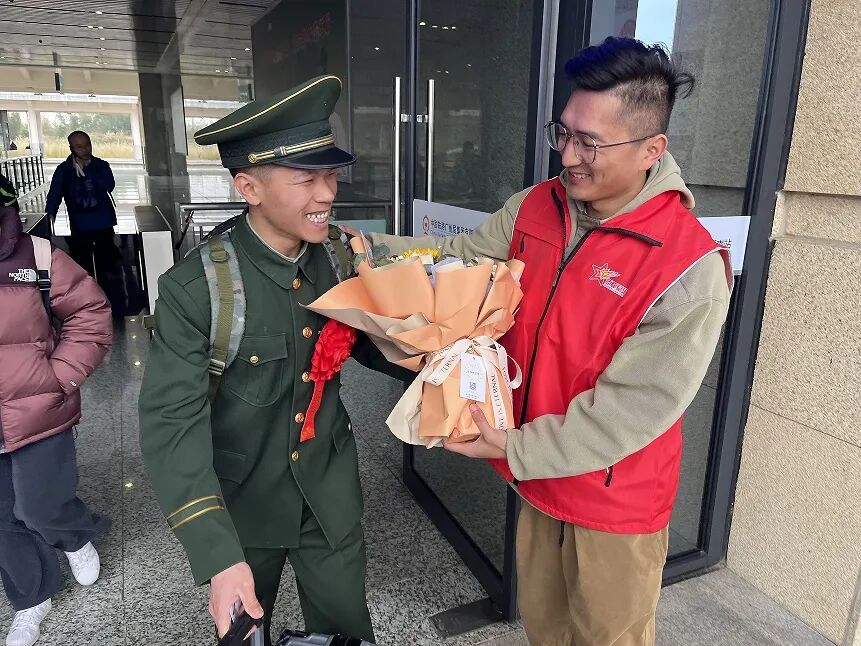 昔日從軍報國,今朝榮歸故里。又是一年退伍季,為扎實做好2024年退役軍人光榮返鄉(xiāng)工作,大力營造尊崇軍人的濃厚氛圍,讓退役軍人真切感受來自家鄉(xiāng)的溫暖和關(guān)愛,蒼城鎮(zhèn)退役軍人服務(wù)站工作人員和退役軍人家屬等人組建成接兵“親友團”,一行前往開平南站,迎接“最可愛的人”回家。 當(dāng)退役軍人從站口出來時,“親友團”隨即上前迎接,熱情問候,并在現(xiàn)場舉行了簡單而熱烈的歡迎儀式,感謝他們?yōu)閲邑暙I青春,為家鄉(xiāng)爭得榮光,讓退役軍人第一時間感受到家鄉(xiāng)的溫情和暖心服務(wù)。 接下來,蒼城鎮(zhèn)退役軍人服務(wù)站將持續(xù)開展光榮返鄉(xiāng)迎接活動,認真做好本年度春季退役軍人報到登記、信息采集、組織關(guān)系轉(zhuǎn)接、醫(yī)保社保關(guān)系轉(zhuǎn)接手續(xù)、優(yōu)待證等“一站式”服務(wù)工作,并通過組織召開座談會、走訪慰問、就業(yè)創(chuàng)業(yè)宣講會等服務(wù),助力退役軍人盡快融入地方,讓他們切實感受到黨和政府的關(guān)心和溫暖。