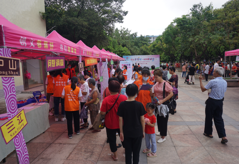 在祥龍公園門口,身穿志愿服的義工在各攤位前為市民服務(wù)。他們通過(guò)講述創(chuàng)文知識(shí),向群眾派發(fā)傳單,做問(wèn)卷調(diào)查,進(jìn)行文藝表演活動(dòng),提供義剪服務(wù)等方式宣傳創(chuàng)文、服務(wù)市民群眾。義工 吳秀洪:以前說(shuō)義工都沒(méi)人知道的,現(xiàn)在不用說(shuō)別人看到我們穿的衣服就知道我們是義工了。所以現(xiàn)在義工這一塊應(yīng)該發(fā)展得比較好,比較系統(tǒng)化了。