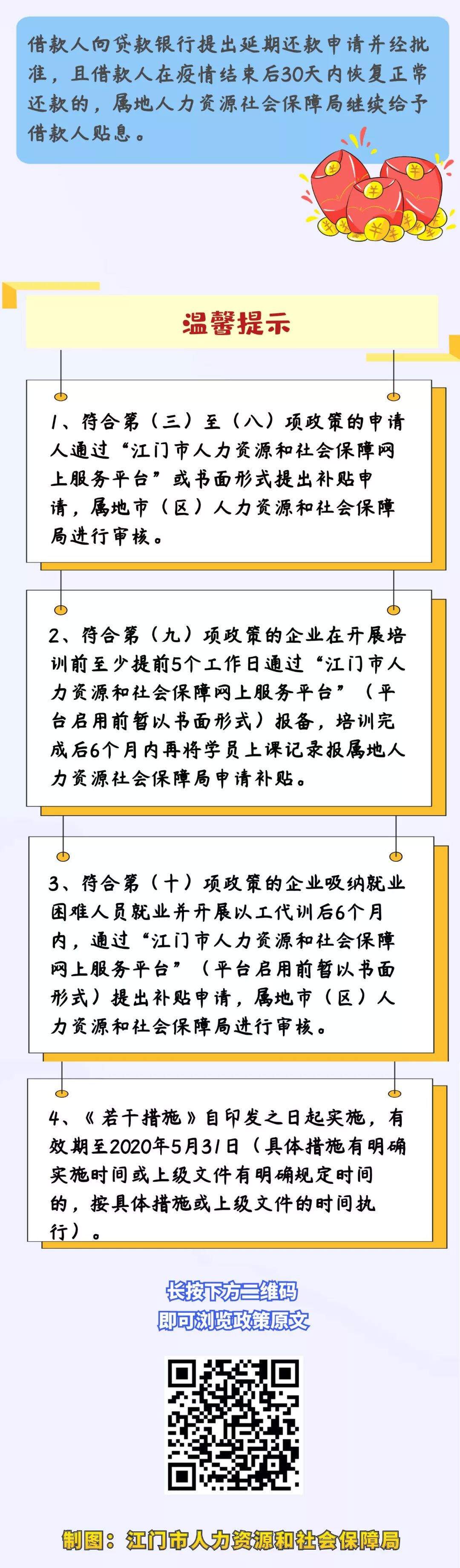 即日起,符合條件的企業(yè)或創(chuàng)業(yè)主體可登錄江門市人力資源和社會保障網(wǎng)上服務(wù)平臺查閱并申領(lǐng)相關(guān)補貼。