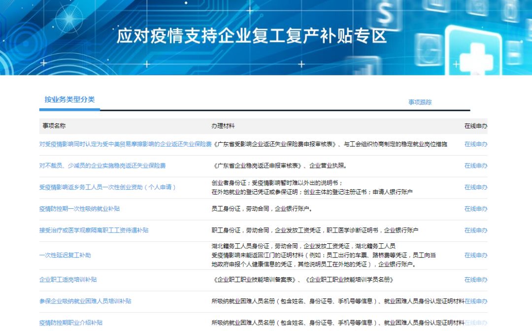 截至目前,已開通網(wǎng)上申請的復(fù)工復(fù)產(chǎn)相關(guān)補貼共8項,詳細(xì)補貼清單如下: