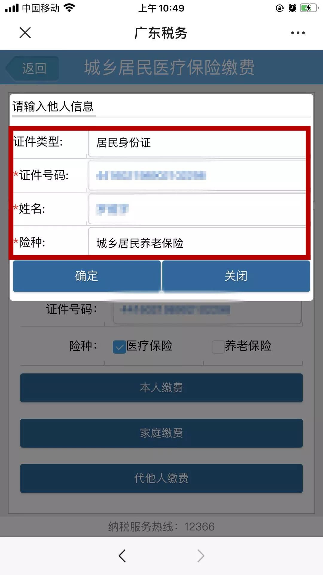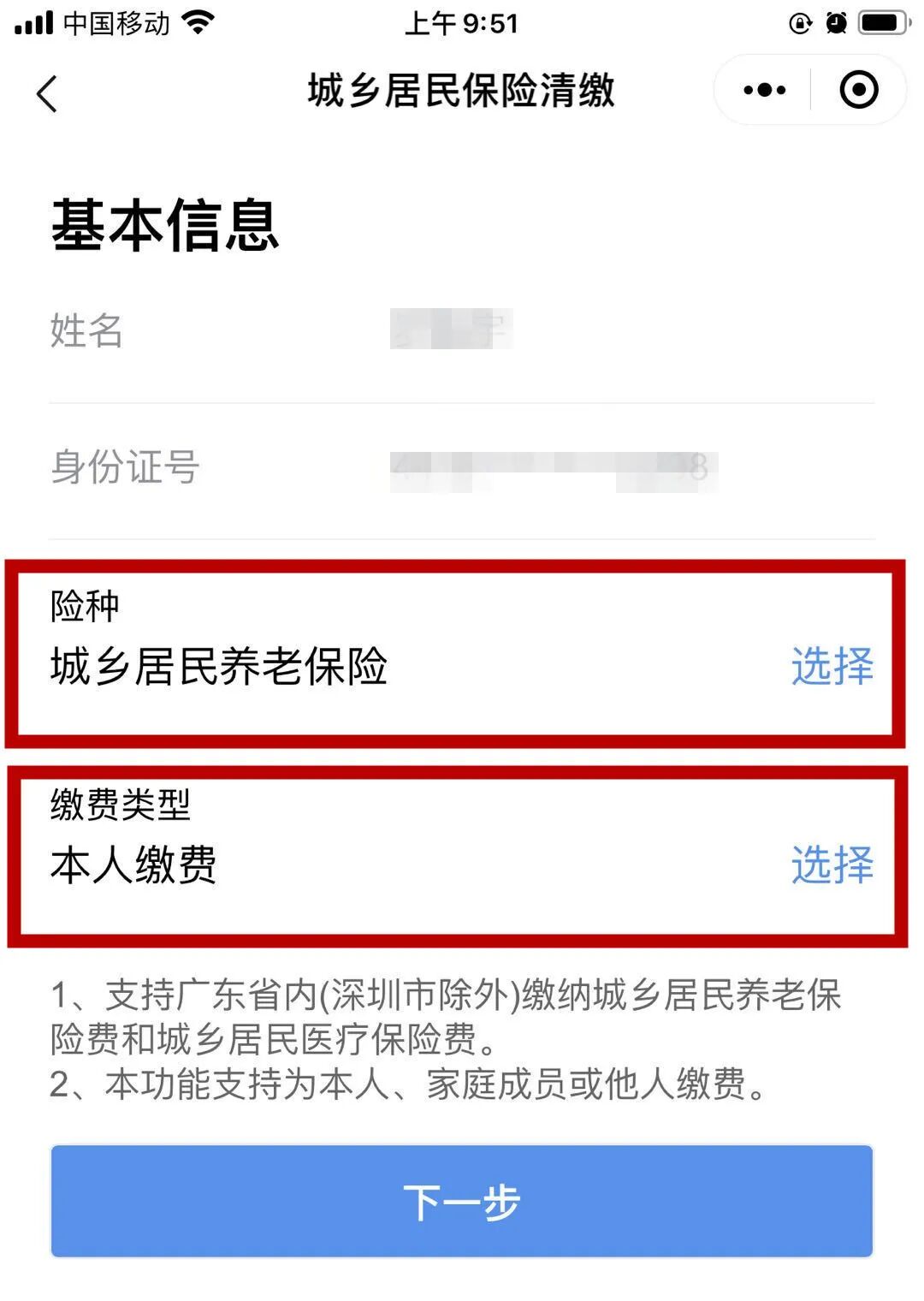 選擇“本人繳費”“家庭繳費”“代他人繳費”。