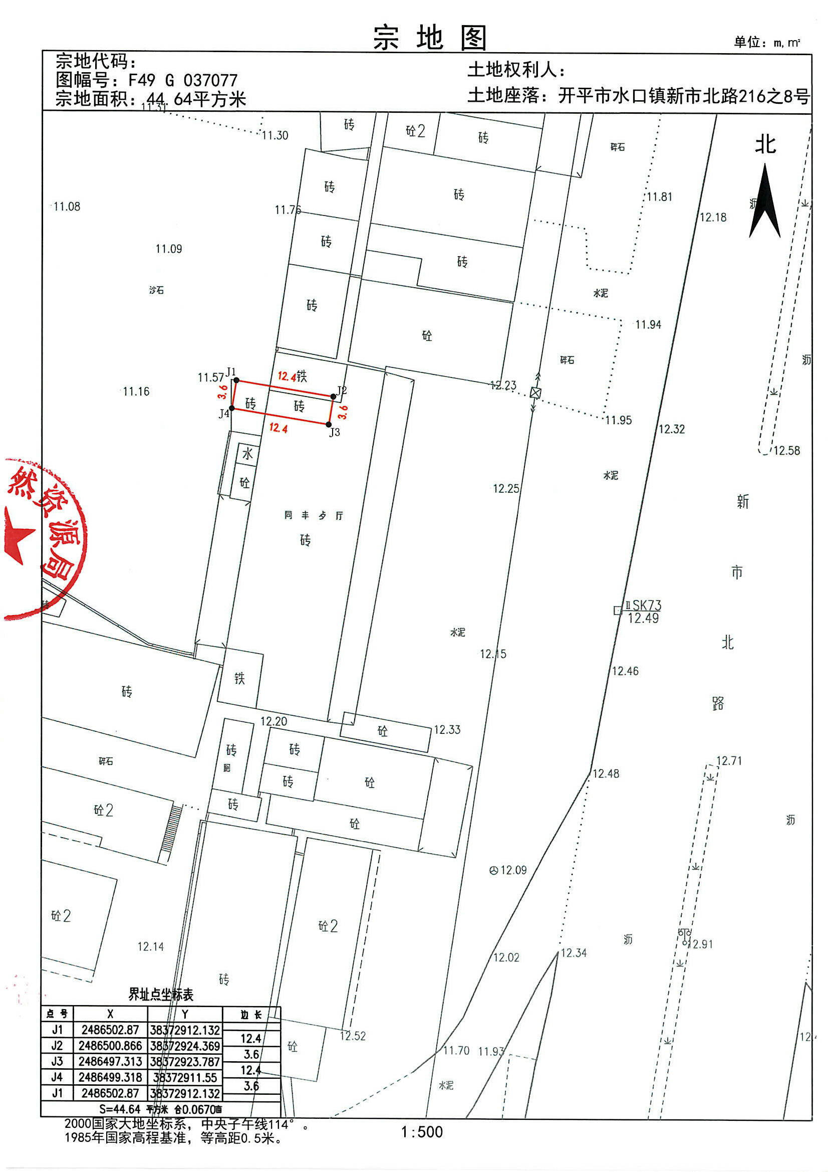 坐落在水口鎮(zhèn)新市北路(現(xiàn)編門牌:開平市水口鎮(zhèn)新市北路216號之8)[開府國用(2001)第00355號]的土地使用權,土地面積44.64平方米。用地單位譚銘巨現(xiàn)申請辦理不動產變更登記。若對該用地界線范圍內的用地或地上建筑物權屬有異議者,自公告之日起15個工作日內向開平市自然資源局水口自然資源所書面提出意見。如無異議,公告期滿即給該單位辦理不動產登記有關手續(xù)。用地界線詳見附圖。