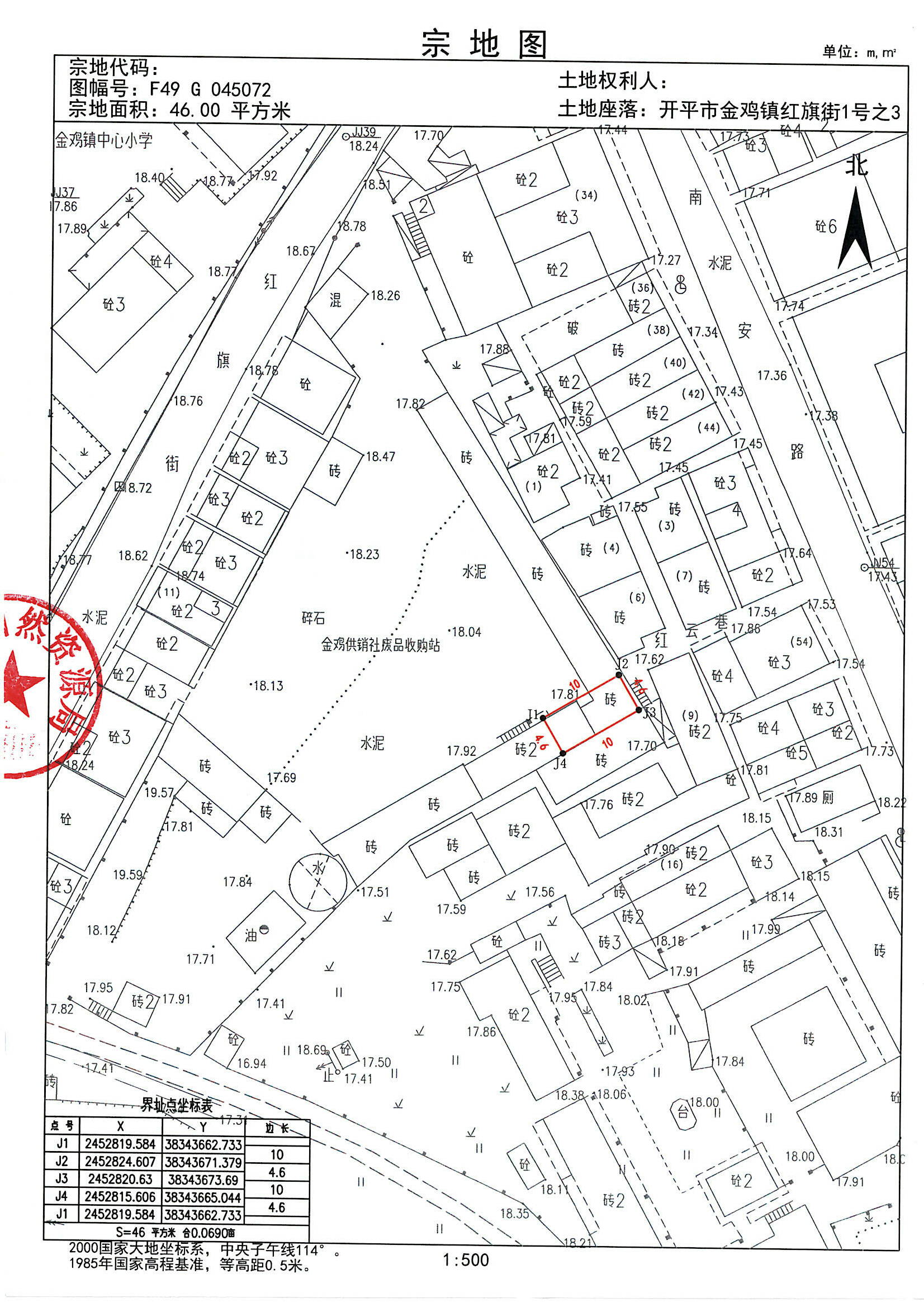 坐落在開平市金雞鎮(zhèn)南安路(現(xiàn)編門牌:開平市金雞鎮(zhèn)紅旗街1號之3)[開府國用(1995)第01494號]的土地使用權(quán),土地面積46平方米。用地單位開平市金雞供銷社現(xiàn)申請辦理不動產(chǎn)變更登記。若對該用地界線范圍內(nèi)的用地或地上建筑物權(quán)屬有異議者,自公告之日起15個(gè)工作日內(nèi)向開平市自然資源局金雞自然資源所書面提出意見。如無異議,公告期滿即給該單位辦理不動產(chǎn)登記有關(guān)手續(xù)。用地界線詳見附圖。