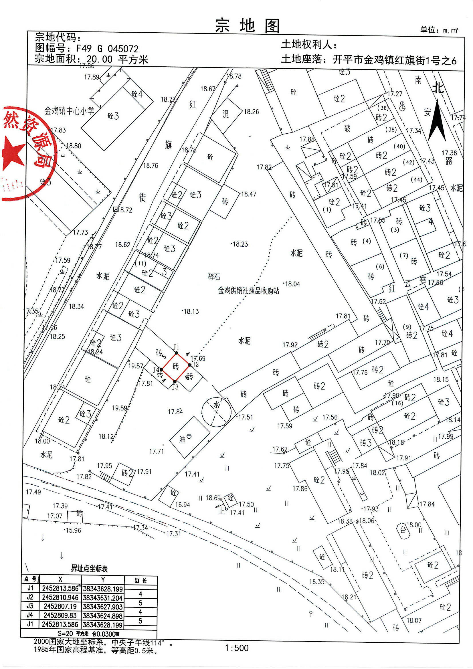 坐落在開(kāi)平市金雞鎮(zhèn)南安路(現(xiàn)編門(mén)牌:開(kāi)平市金雞鎮(zhèn)紅旗街1號(hào)之6)[開(kāi)府國(guó)用(1995)第01491號(hào)]的土地使用權(quán),土地面積20平方米。用地單位開(kāi)平市金雞供銷(xiāo)社現(xiàn)申請(qǐng)辦理不動(dòng)產(chǎn)變更登記。若對(duì)該用地界線范圍內(nèi)的用地或地上建筑物權(quán)屬有異議者,自公告之日起15個(gè)工作日內(nèi)向開(kāi)平市自然資源局金雞自然資源所書(shū)面提出意見(jiàn)。如無(wú)異議,公告期滿(mǎn)即給該單位辦理不動(dòng)產(chǎn)登記有關(guān)手續(xù)。用地界線詳見(jiàn)附圖。