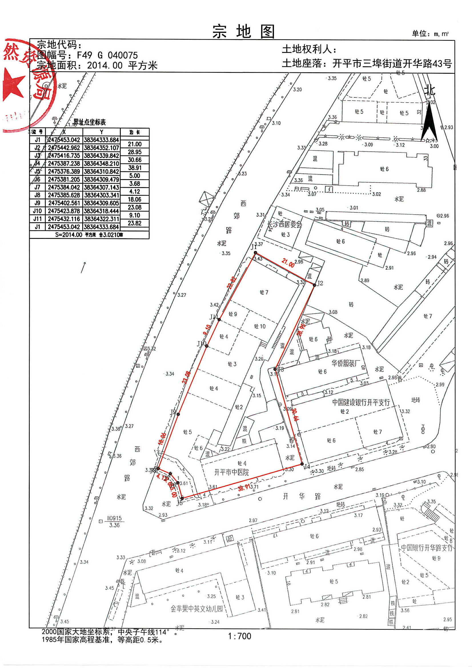 坐落在三埠長沙開華路(現(xiàn)編門牌:開平市三埠街道開華路43號(hào))[開府國用(1988)第000913號(hào)]的土地使用權(quán),土地面積2014平方米。用地單位開平市中醫(yī)院現(xiàn)申請(qǐng)辦理不動(dòng)產(chǎn)變更登記。若對(duì)該用地界線范圍內(nèi)的用地或地上建筑物權(quán)屬有異議者,自公告之日起15個(gè)工作日內(nèi)向開平市自然資源局三埠自然資源所書面提出意見。如無異議,公告期滿即給該單位辦理不動(dòng)產(chǎn)登記有關(guān)手續(xù)。用地界線詳見附圖。
