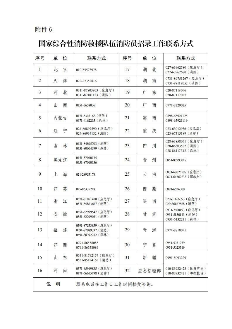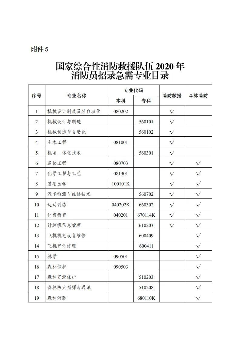1.國家綜合性消防救援隊伍2020年消防員招錄計劃4.國家綜合性消防救援隊伍消防員招錄體能測試、崗位適應性測試項目及標準5.國家綜合性消防救援隊伍2020年消防員招錄急需專業(yè)目錄6.國家綜合性消防救援隊伍消防員招錄工作聯(lián)系方式